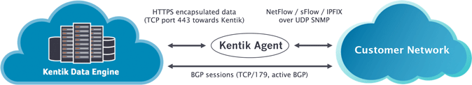- Proxy agent: Flow data is collected via a locally hosted instance of kproxy, Kentik's NetFlow Proxy Agent, which can handle both flow and SNMP data.