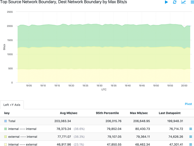 The following screenshot shows an example of a visualization that you can generate in Data Explorer once network boundary classification is implemented on a given interface.