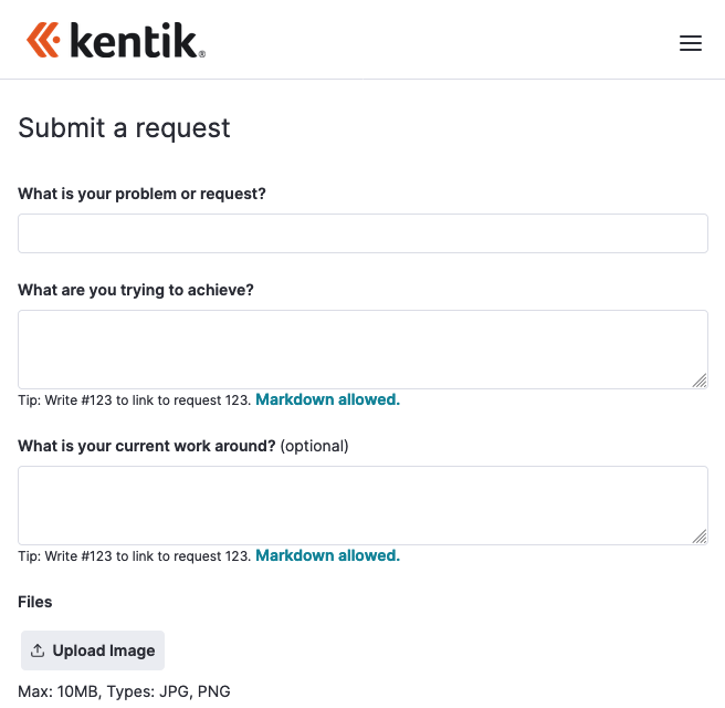Requests for new features, which are evaluated by our Product team, are submitted via the portal: