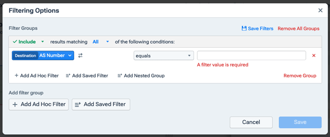- To use source or destination CDN as a filter (as shown in the screenshot below), see Filtering Pane.