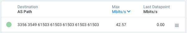 - The announced origin ASN that Kentik correlated with the flow at ingest, which is shown in the Destination ASN column, is 61503.