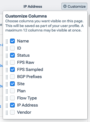 - Plan: The devices are grouped by their Kentik billing plan (see About Plans).