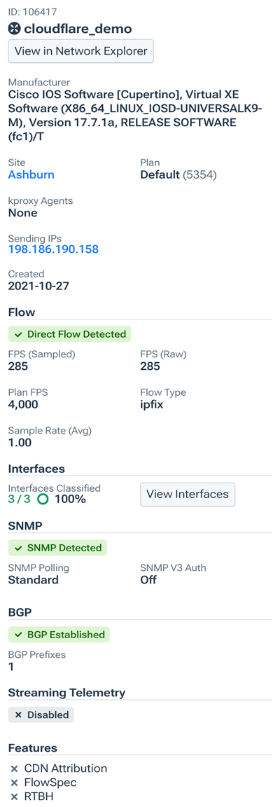 - Kentik Agent: Device’s flow is coming via Kentik's kproxy software agent (see Kentik Proxy Agent).
