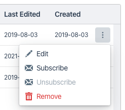 - In the Subscriptions List, find the row corresponding to the subscription you’d like to edit, then click the vertical ellipsis at the right of the row to open the Action menu.