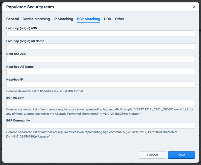 Populator BGP Matching
