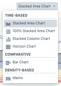 - Matrix- Preview Qualitative Views: The Visualization drop-down at the top right of the Qualitative Views preview pane (bottom preview) includes the following chart types that display qualitative data: