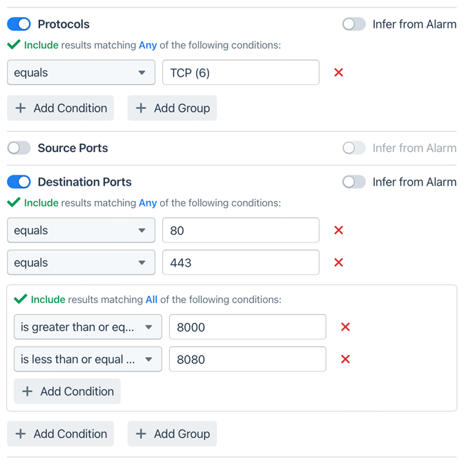 | Use Protocol From Alert Dimension switch | Protocol dimension set in the policy Dataset | Protocol setting in Method details |