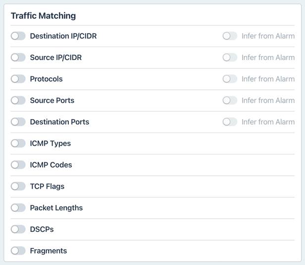 - Platform: The platform on which a mitigation will run (e.g. Flowspec, Cloudflare, Radware, etc.).