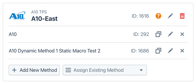 - Assign Existing Method: A drop-down from which you can choose to add a method that was previously created for this platform. - Configure: See settings for the following specific platforms: