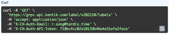 - In the Kentik portal, navigate from the main navbar menu to the API Tester and click Label Management API in the API list.