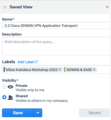- Labels: An optional set of controls to add and apply labels to the saved view (see Labels Controls).