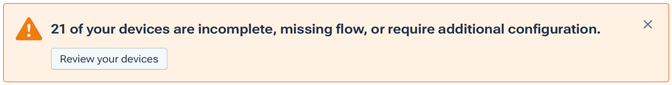 - Review your devices: A callout that appears at the top of the page if any of your organization's devices need attention in order for their flow data to be ingested into Kentik. The Review your devices button takes you to the Device Status page, where you can address issues with the devices.