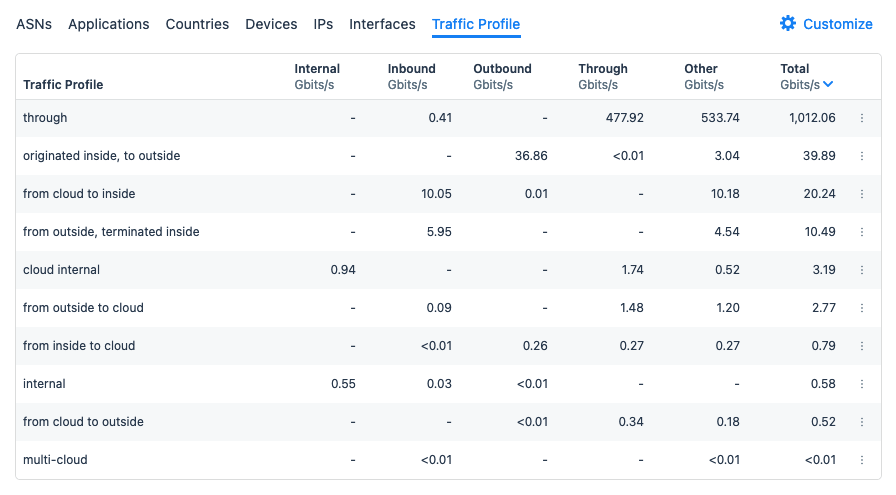 - Internal: Traffic whose origin and destination are both within your network.