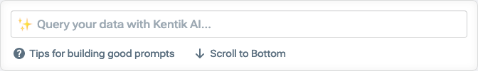 - Query: An input field into which you can enter, in natural language, text describing what you'd like your query results to show you (e.g. "show me interface utilization using line chart with "PEER" in the description"). To submit the entered text for conversion into a query, press Return/Enter on your keyboard.