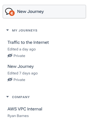 - Visibility (eye icon): Click to toggle the journey between the following private and shared.