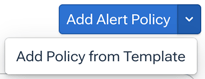 - Open menu (down arrow at right): Open a drop-down from which you can choose Add Policy from Template, which opens an Add Alert Policy from Template dialog that enables you to create a policy from a policy template. - Filters (funnel icon): A button that toggles the Filters pane between expanded and collapsed.