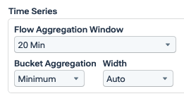 - Minimum: Selects the flow aggregation sample with the minimum value in each bucket. - Width (hidden when Bucket Aggregation is set to None): The width (in time) of the "buckets" into which flow aggregation samples are aggregated to make a time series for top-X results: