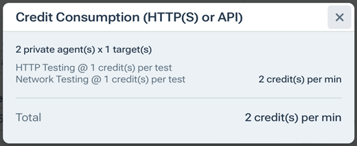 Note: On an Edit Test page (but not when adding a test), you can see a breakdown of the test’s points usage by clicking credit(s) per min to open the Credit Consumption Dialog.