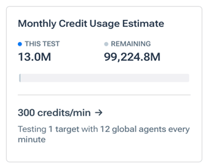 Monthly Credit Usage Estimate: A card at the bottom of the sidebar that shows the impact of the test, as currently configured, on your organization’s consumption of credits available for the current month (see About Test Credits). The card includes: