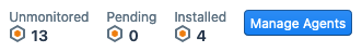 Note: On the Services Tab, the count shown in these counters depends on the services that have been selected for monitoring with the Configure Service Monitoring dialog.- Manage Agents: A button that opens the Manage Agents Dialog.