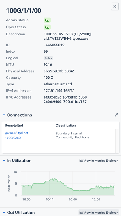 - Chart: A visual representation of traffic for this interface over the last 24 hours. Hover over any point in the graph to view a popup with the timestamp and data point.